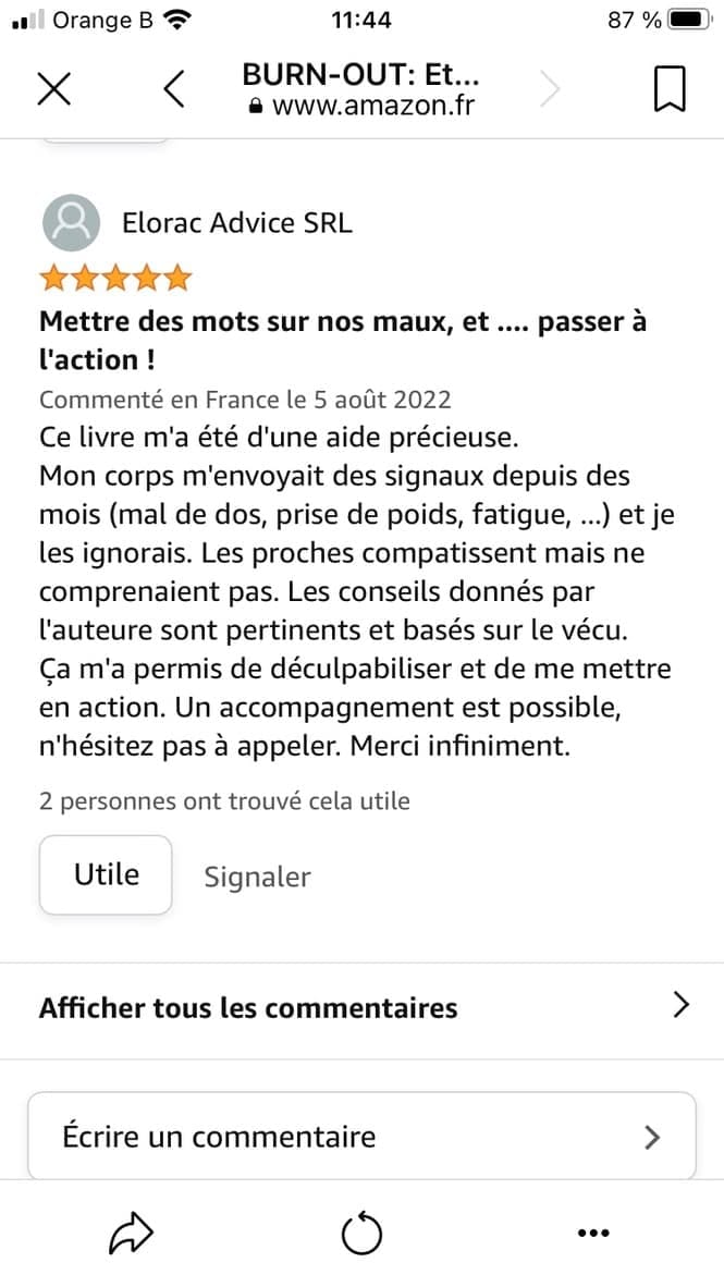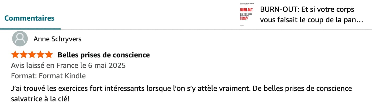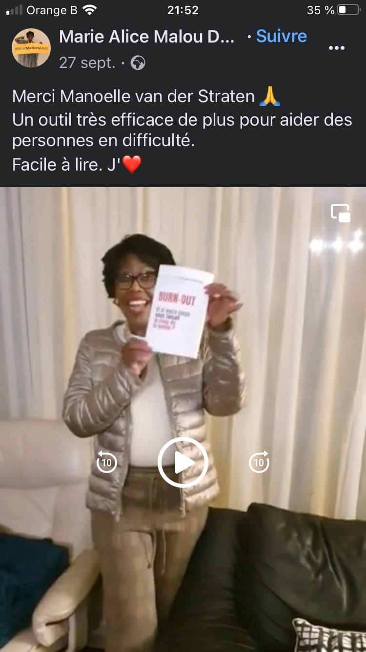 Auteure du livre "Burn-out: Et si votre corps vous faisait le coup de la panne?" en vente sur Amazon